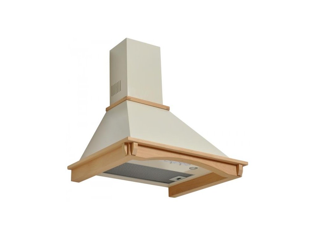 Rustikální komínová digestoř, šíře 60 cm, bílá / nemořená buková lišta, max. výkon 405 m³/h (5 Pa), hlučnost Lw 51 – 61 dB(A), 3 rychlosti, odsávací jednotky mají individuálně vyvažovanou turbínu, motory jsou opatřené vratnými tepelnými pojistkami (při přetížení motoru vypne, po jeho vychladnutí opět sepne), mechanické posuvné ovládání, kovové sendvičové tukové filtry, které lze mýt v myčce, možnost práce v odtahovém i recirkulačním režimu, výstupní průměr 150 mm, Výbava: úsporné LED osvětlení 2 × 2 W, zdarma redukce na 120 mm a zpětná klapka, Benefity: nemořená dřevěná lišta umožňuje individuální barevné doladění třeba podle materiálu kuchyněDoplňkové parametry