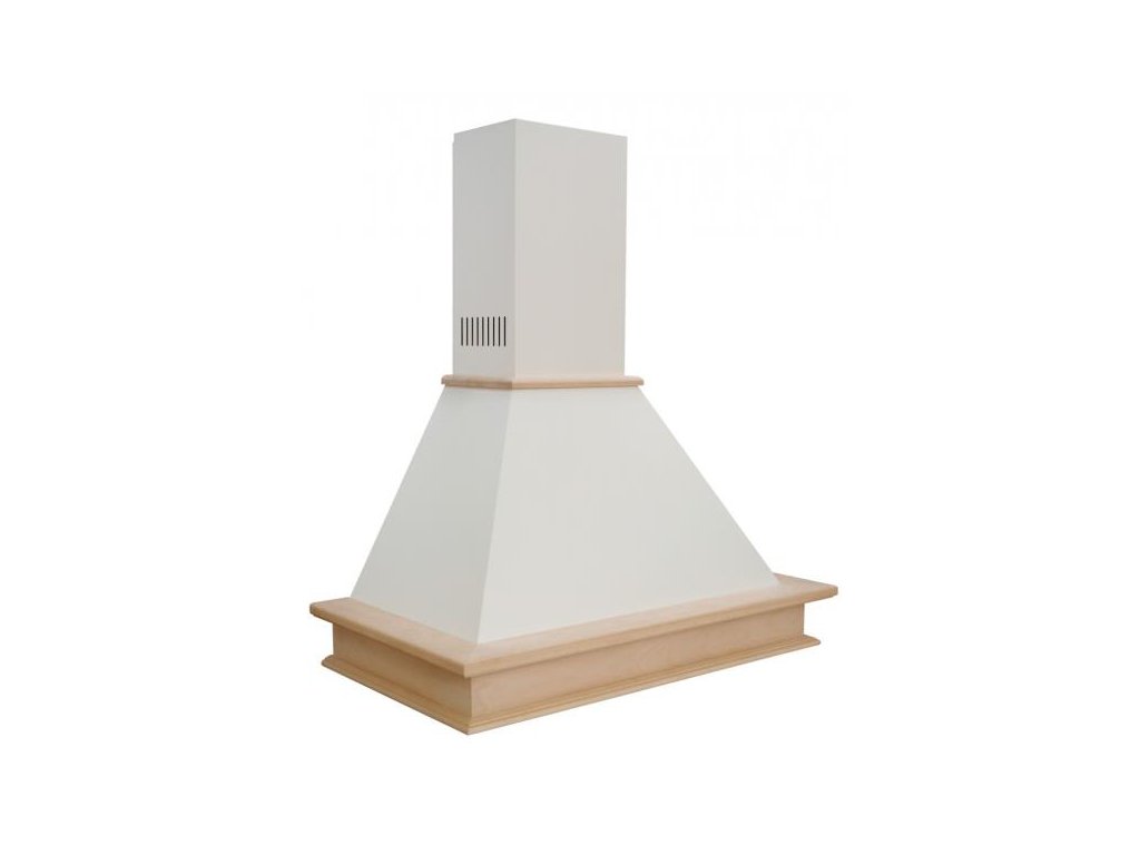Rustikální komínová digestoř, šíře 90 cm, bílá / nemořená buková lišta, max. výkon 405 m³/h (5 Pa), hlučnost Lw 51 – 61 dB(A), 3 rychlosti, odsávací jednotky mají individuálně vyvažovanou turbínu, motory jsou opatřené vratnými tepelnými pojistkami (při přetížení motoru vypne, po jeho vychladnutí opět sepne), mechanické posuvné ovládání, kovové sendvičové tukové filtry, které lze mýt v myčce, možnost práce v odtahovém i recirkulačním režimu, výstupní průměr 120 mm, Výbava: úsporné LED osvětlení 2 × 2 W, zdarma zpětná klapka, Benefity: nemořená dřevěná lišta umožňuje individuální barevné doladění třeba podle materiálu kuchyněDoplňkové parametry