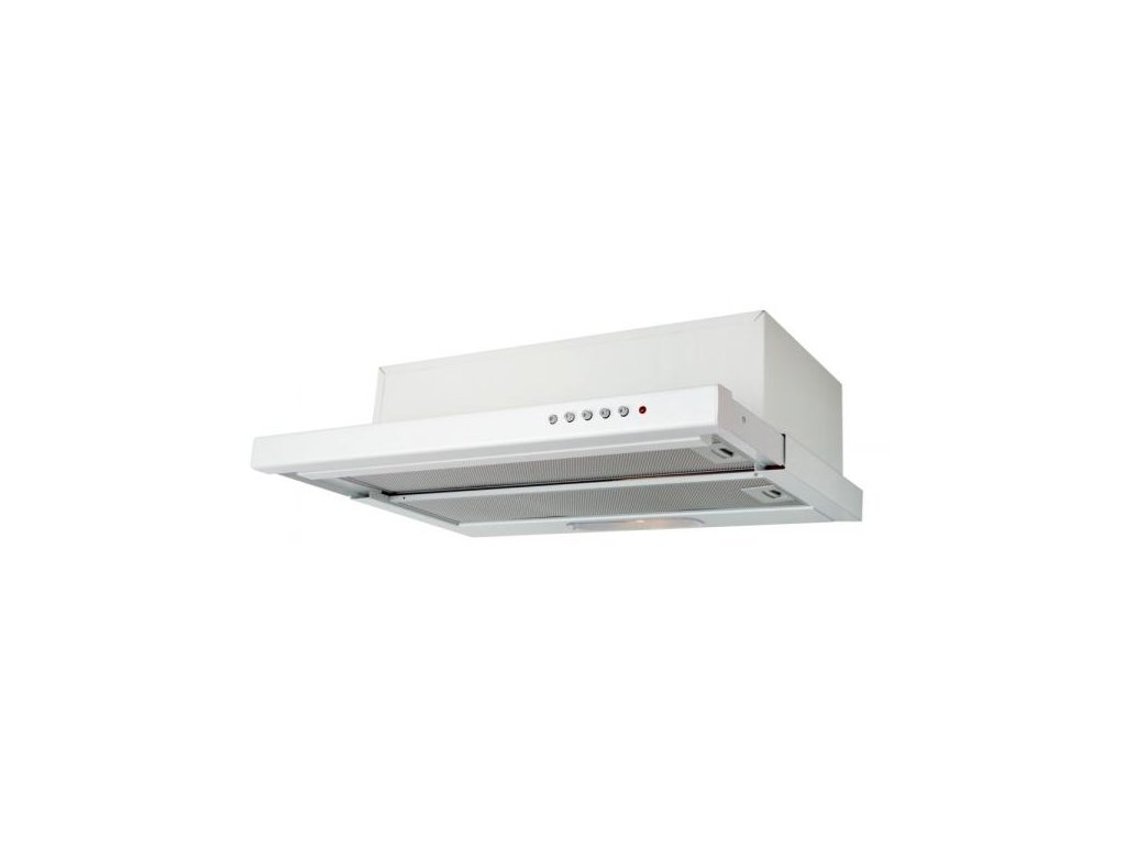Vestavná digestoř výsuvná, šíře 50 cm, bílá, max. výkon 338 m³/h (15 Pa), hlučnost Lw 56 – 71 dB(A), 3 rychlosti, odsávací jednotky mají individuálně vyvažovanou turbínu, motory jsou opatřené vratnými tepelnými pojistkami (při přetížení motoru vypne, po jeho vychladnutí opět sepne), mechanické posuvné ovládání, kovové sendvičové tukové filtry, které lze mýt v myčce, možnost práce v odtahovém i recirkulačním režimu, Výbava: úsporné LED osvětlení 2 × 2 W, zdarma zpětná klapka Recirkulační režim u vestavných digestoří: Digestoř se osadí uhlíkovým pachovým filtrem. Přefiltrovaný vzduch se z digestoře odvádí obdobně jako u odtahového režimu trubkou, která prochází celou skříňkou. Tato trubka však neústí kolenem do zdi, ale nad skříňku, kde ji doporučujeme zakončit mřížkou.Pro výrobu skříňky je směrodatný rozměrový nákres a údaje v něm uvedené. Fotografie digestoří jsou ilustrační.Doplňkové parametry