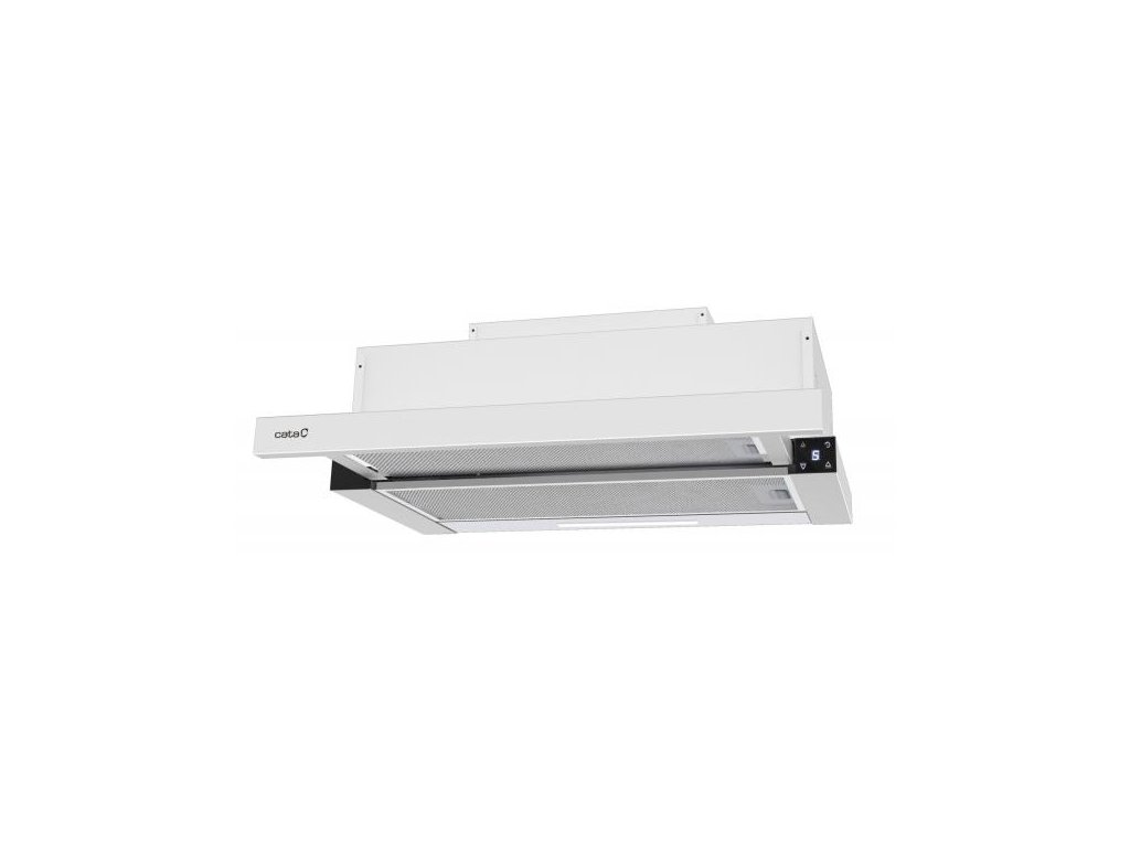 Bezkartáčový (brushless) motor CATA T1DC je konstruovaný tak, aby eliminoval v maximální míře vnitřní tření (tím, že neobsahuje uhlíkové kartáče) a tak dosahoval maximálních výkonů při nízké hlučnosti a nízké spotřebě elektrické energie. Zároveň tím, že nepoužívá uhlíkové kartáče a ty tak není potřeba pravidelně měnit, zvyšuje se životnost motoru a tím i celé digestoře. Vestavná výsuvná digestoř s bezkartáčovým motorem: šíře 600 mm, bílá, 1 motor T1DC 90 W, 5 rychlostí + TURBO, 575 m3/h (5 Pa), max. tlak 300 Pa, max. hlučnost Lw 63 dB. Recirkulační režim u vestavných digestoří: Digestoř se osadí uhlíkovým pachovým filtrem. Přefiltrovaný vzduch se z digestoře odvádí obdobně jako u odtahového režimu trubkou, která prochází celou skříňkou. Tato trubka však neústí kolenem do zdi, ale nad skříňku, kde ji doporučujeme zakončit mřížkou.Pro výrobu skříňky je směrodatný rozměrový nákres a údaje v něm uvedené. Fotografie digestoří jsou ilustrační.Doplňkové parametry