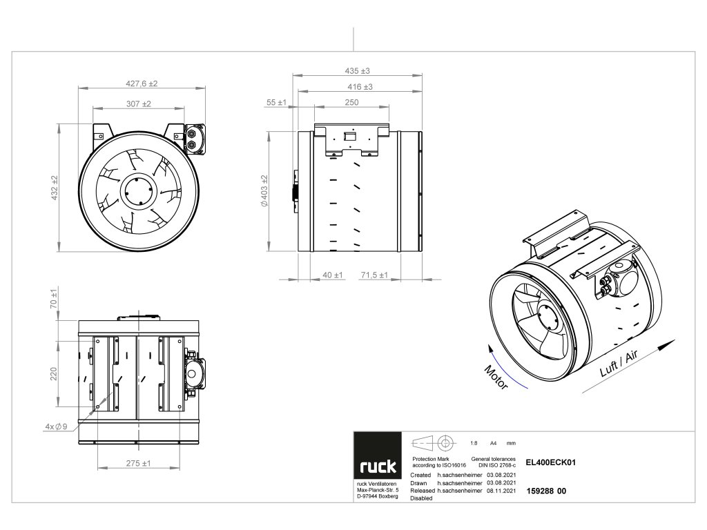 Ventilátory mají tichý chod, kompaktní konstrukci a vysokou energetickou účinnost, přičemž jsou vybaveny ochranou motoru třídy F