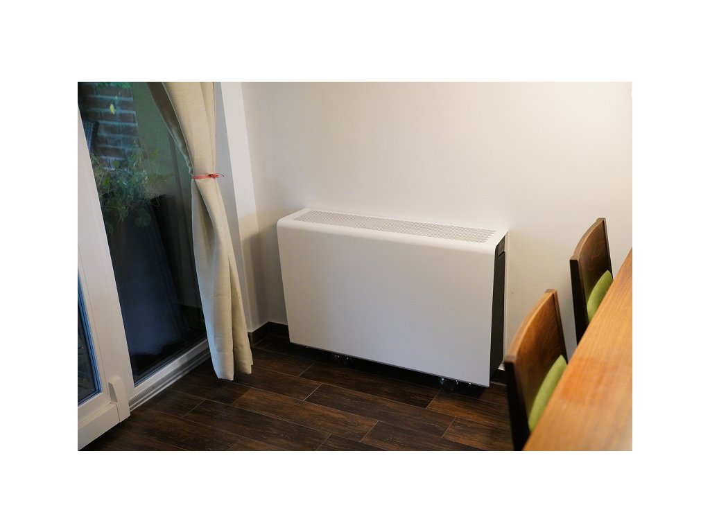 Decentrální větrací jednotka s rekuperací tepla nebo tepla a vlhkosti, kombinovaná s konvektorem.