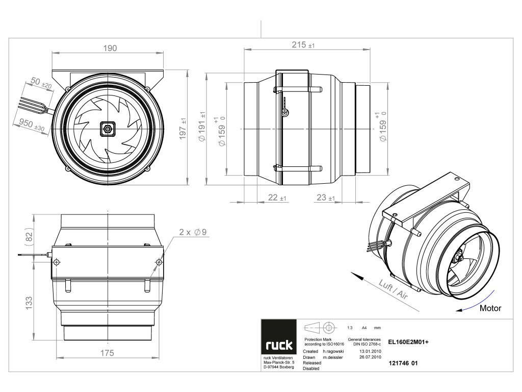 Ventilátory Ruck Etaline jsou dostupné ve variantách pro 230 V (jednofázové napájení) i 400 V (třífázové napájení).