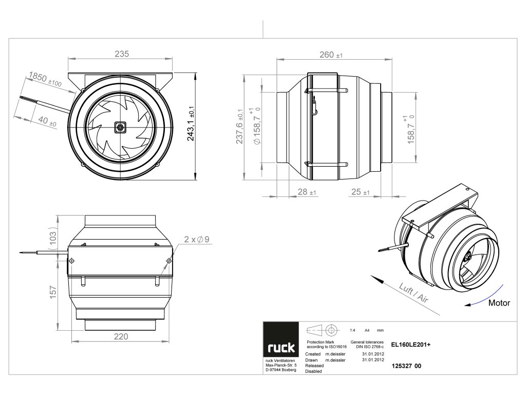 Ventilátory Ruck Etaline jsou dostupné ve variantách pro 230 V (jednofázové napájení) i 400 V (třífázové napájení).