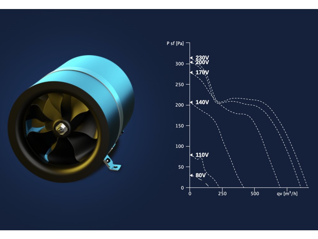 - EC motor (elektronicky komutovaný) – až o 50 % úspornější, tišší a s možností plynulé regulace výkonu (0–10 V). Vhodný pro trvalý provoz a systémy s požadavkem na nízkou hlučnost.