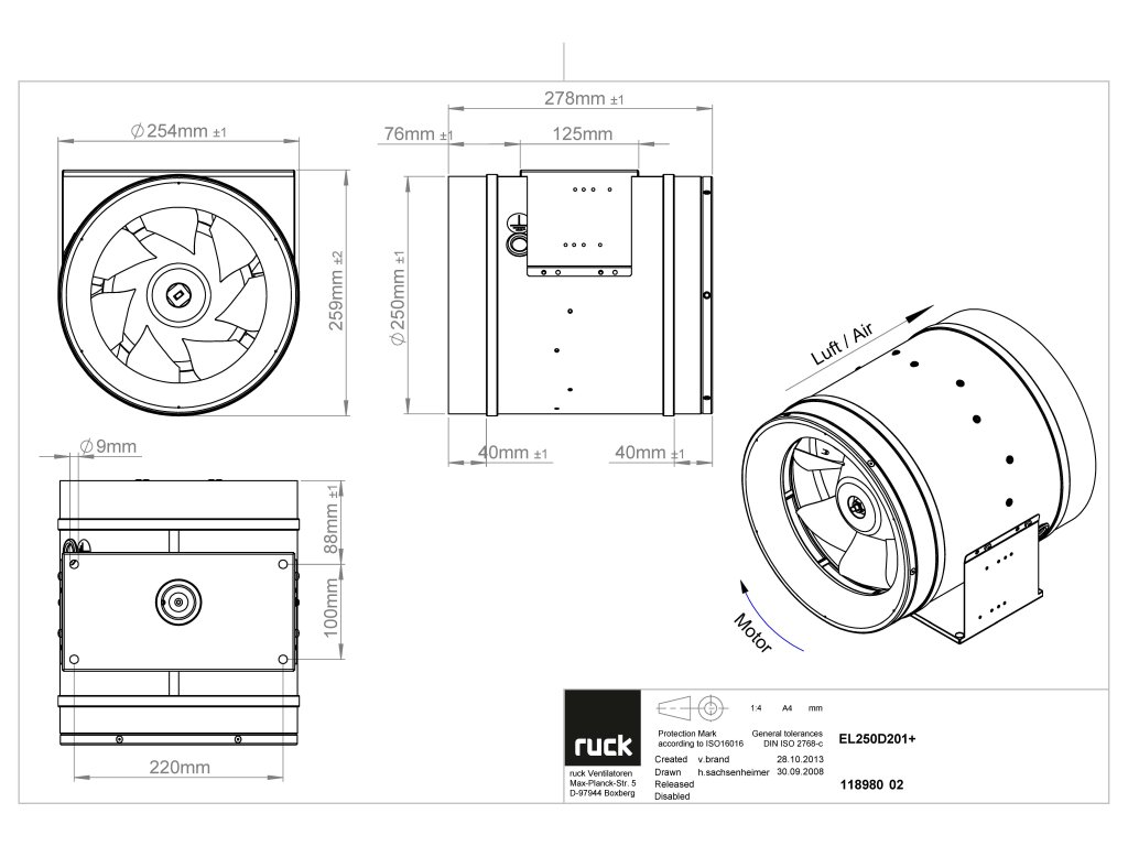 Ventilátory Ruck Etaline jsou dostupné ve variantách pro 230 V (jednofázové napájení) i 400 V (třífázové napájení).