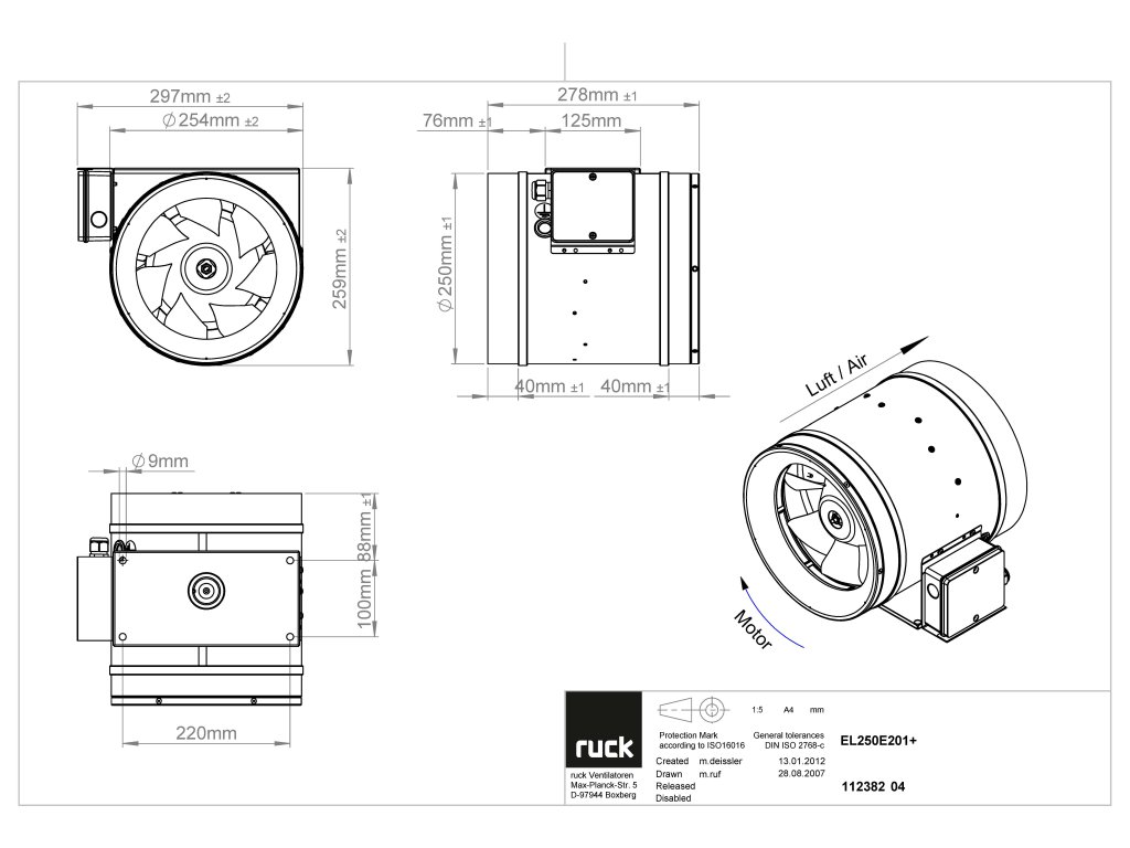 Ventilátory Ruck Etaline jsou dostupné ve variantách pro 230 V (jednofázové napájení) i 400 V (třífázové napájení).