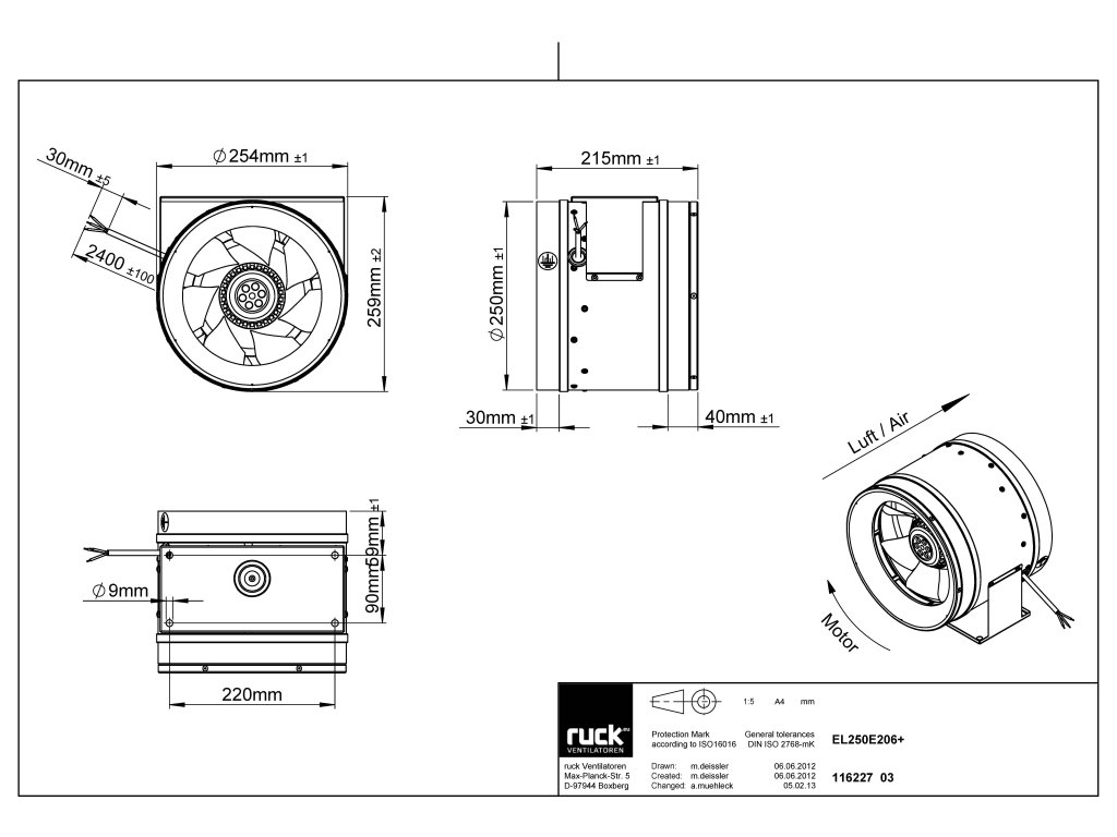 Ventilátory Ruck Etaline jsou dostupné ve variantách pro 230 V (jednofázové napájení) i 400 V (třífázové napájení).