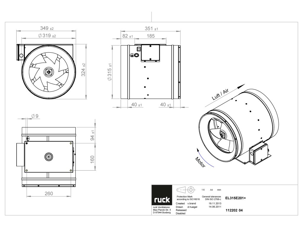 Ventilátory Ruck Etaline jsou dostupné ve variantách pro 230 V (jednofázové napájení) i 400 V (třífázové napájení).