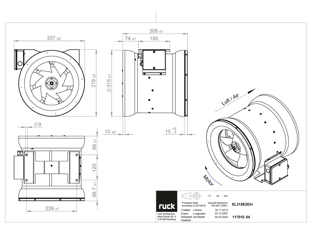 Ventilátory Ruck Etaline jsou dostupné ve variantách pro 230 V (jednofázové napájení) i 400 V (třífázové napájení).