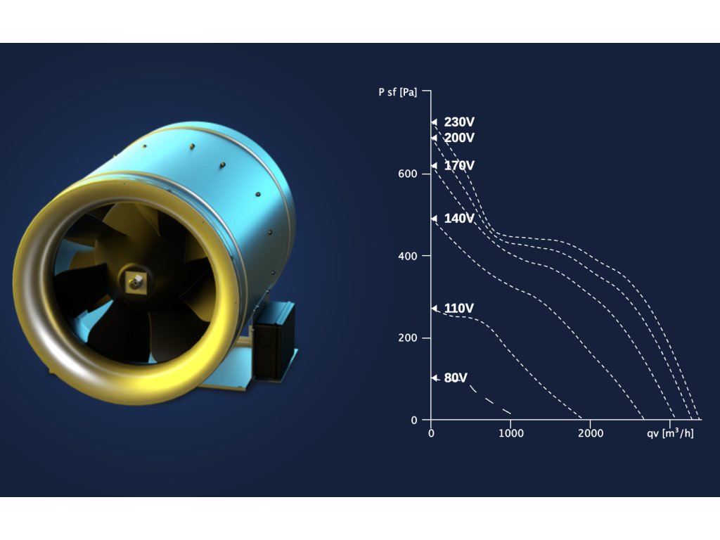 - 400 V ventilátory jsou určeny pro náročnější provozy s vyšším výkonem, delším potrubím nebo trvalým zatížením. Nabízejí stabilnější chod, nižší proudové zatížení motoru a delší životnost při nepřetržitém provozu.