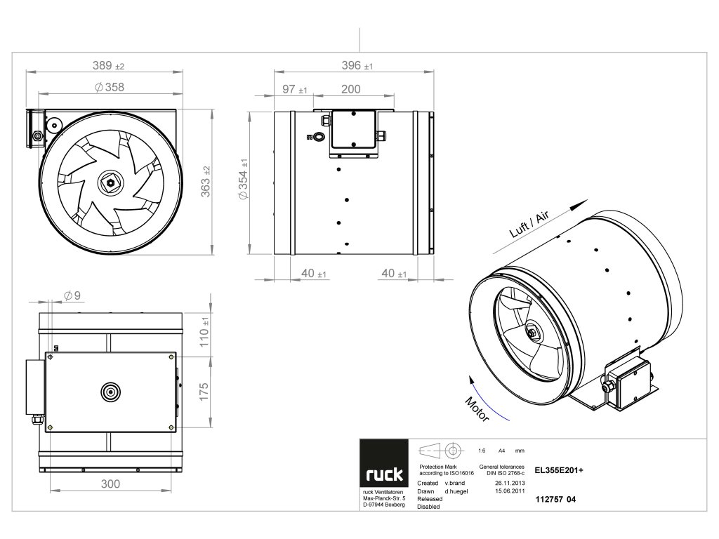 Ventilátory Ruck Etaline jsou dostupné ve variantách pro 230 V (jednofázové napájení) i 400 V (třífázové napájení).