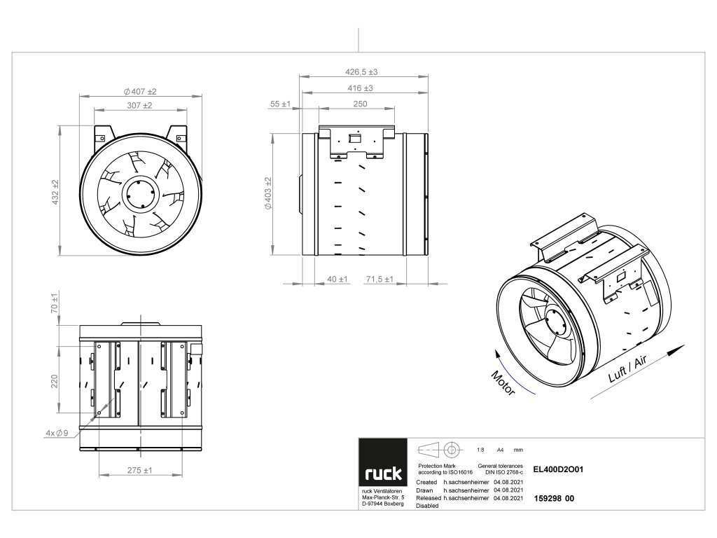 Ventilátory Ruck Etaline jsou dostupné ve variantách pro 230 V (jednofázové napájení) i 400 V (třífázové napájení).