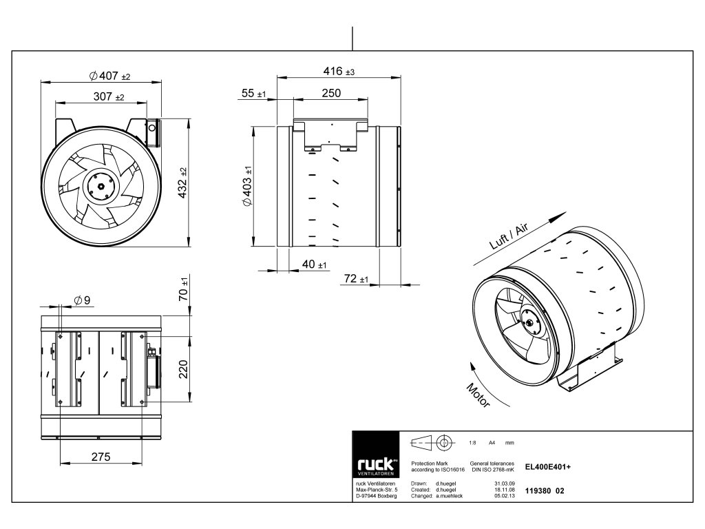 Ventilátory Ruck Etaline jsou dostupné ve variantách pro 230 V (jednofázové napájení) i 400 V (třífázové napájení).
