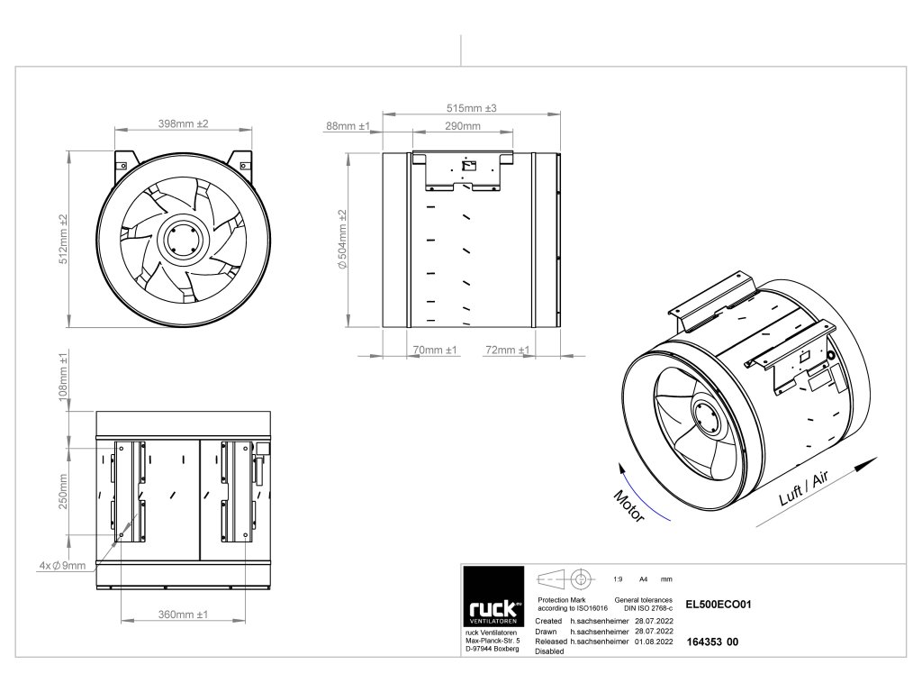 Ventilátory Ruck Etaline jsou dostupné ve variantách pro 230 V (jednofázové napájení) i 400 V (třífázové napájení).