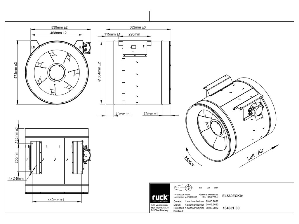 Ventilátory Ruck Etaline jsou dostupné ve variantách pro 230 V (jednofázové napájení) i 400 V (třífázové napájení).
