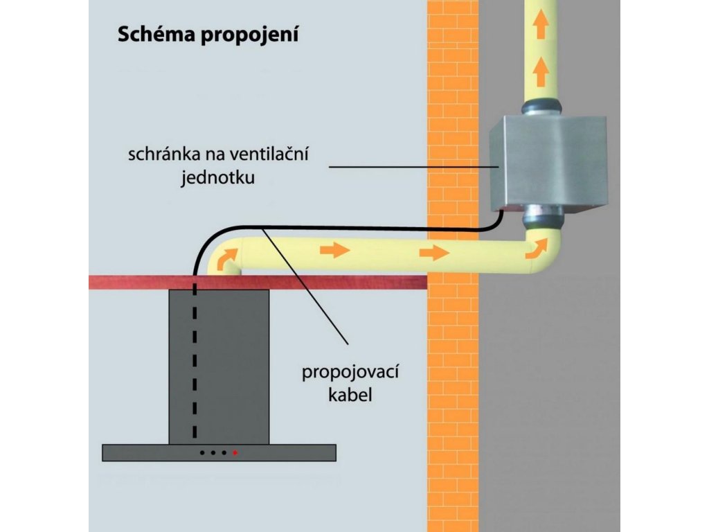 Sada obsahuje schránku pro přemístění ventilační jednotky digestoře a propojovací kabel s konektory v délce 4 metry, za každý další metr propojovacího kabelu se cena navyšuje o 100 Kč.