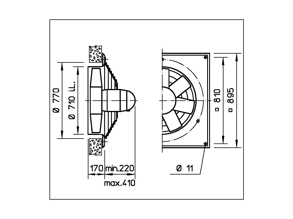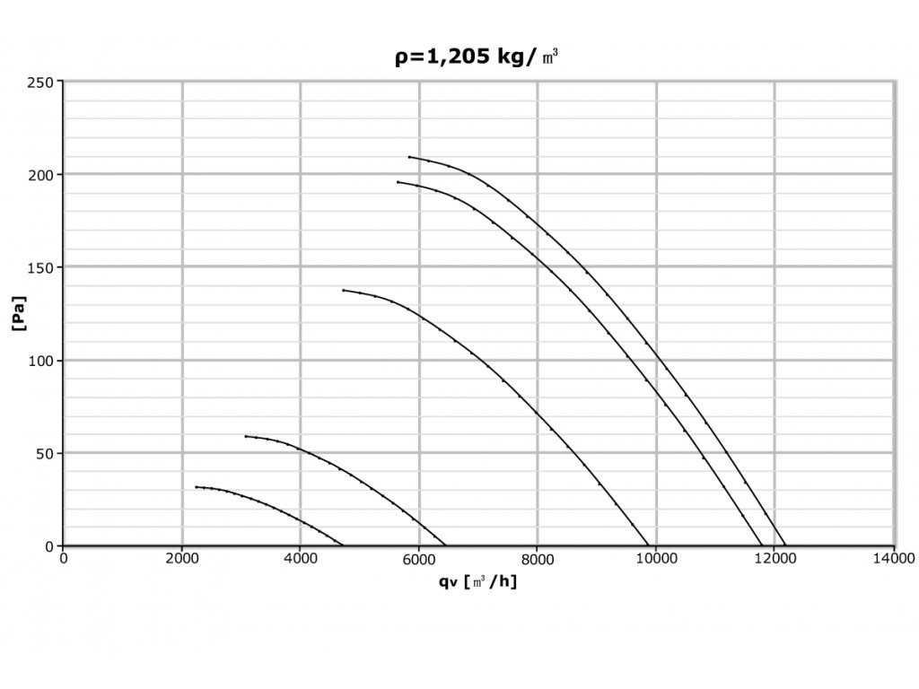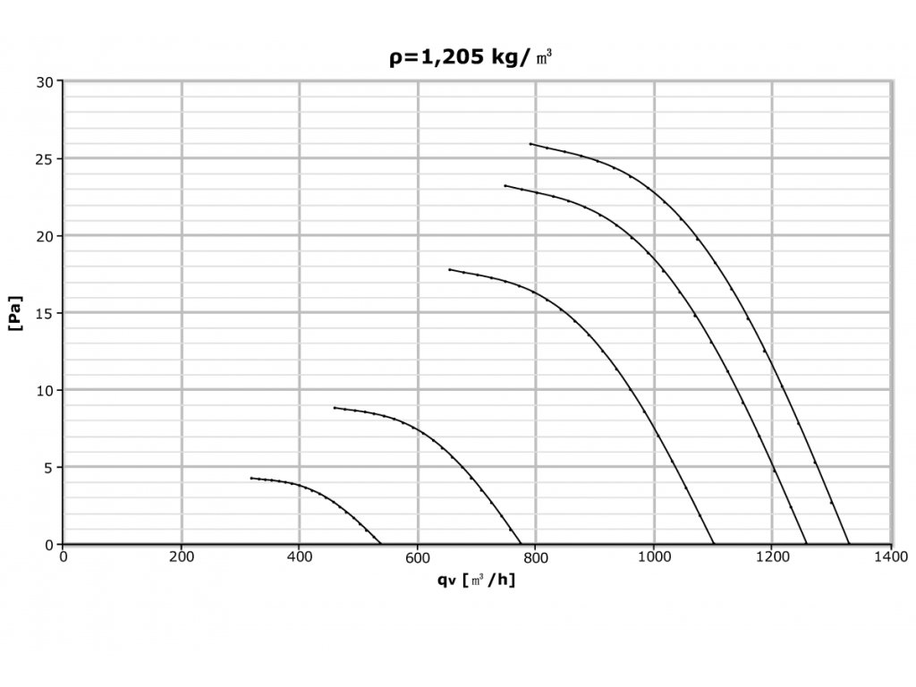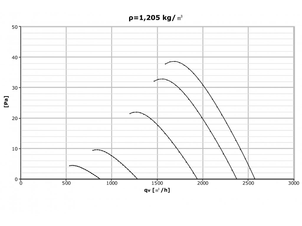 Lopatky jsou vyrobeny z termoplastu. Dynamicky vyvážené pro vysokou účinnost a nízkou hladinu hluku. Provozní rozsah od -30°C do +60°C.