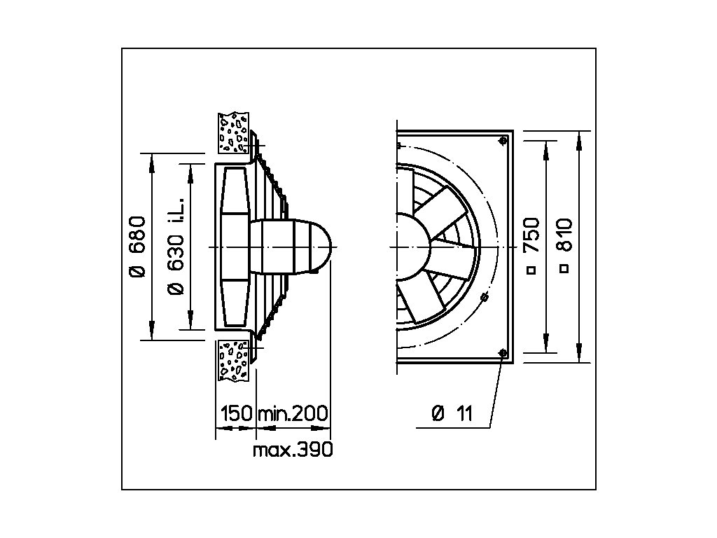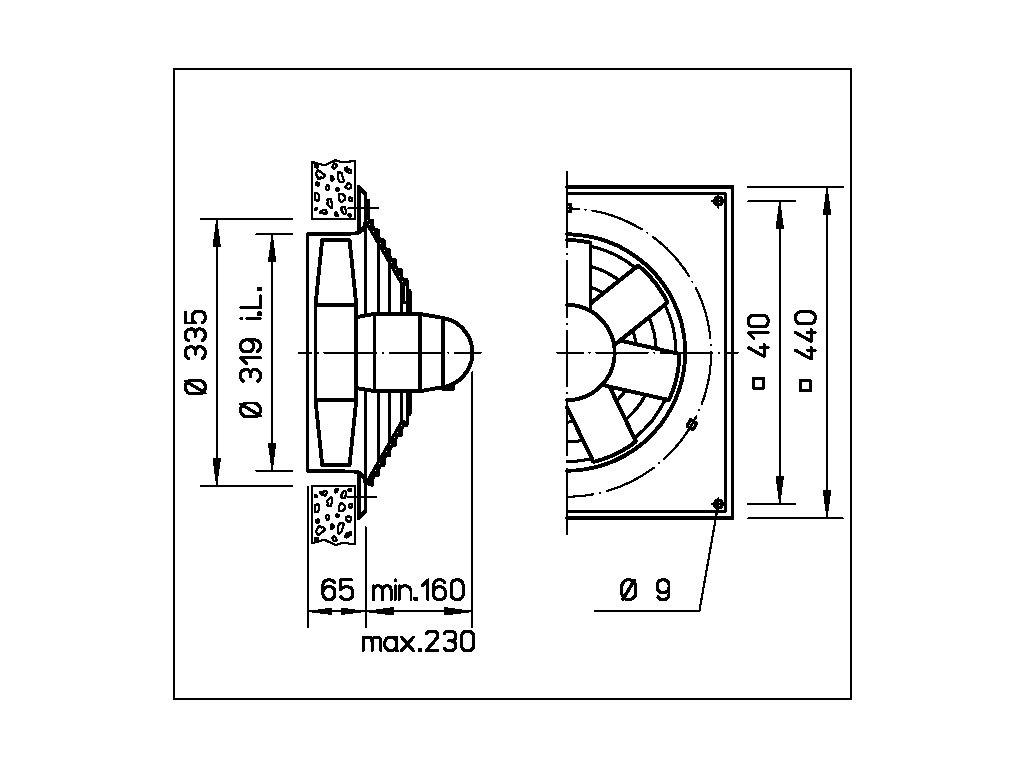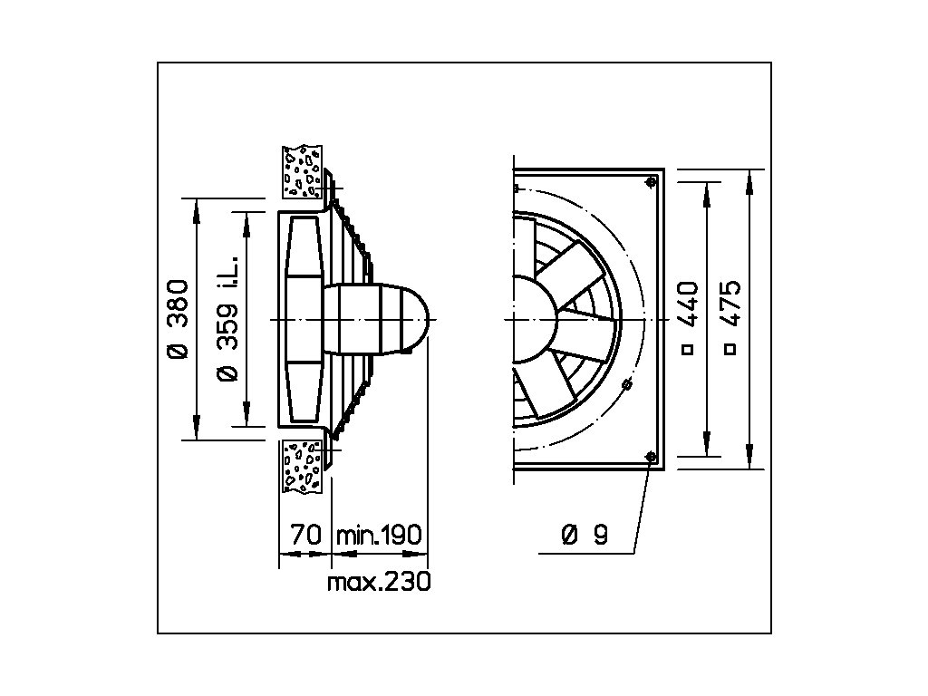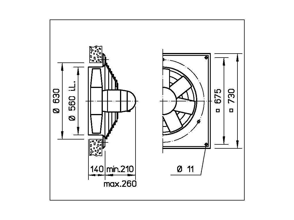 Lopatky jsou vyrobeny z termoplastu. Dynamicky vyvážené pro vysokou účinnost a nízkou hladinu hluku. Provozní rozsah od -30°C do +60°C.