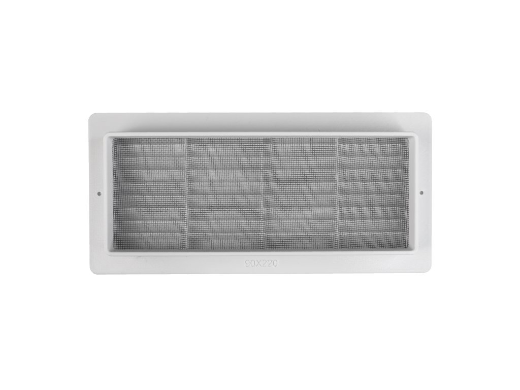 Hranatá plastová mřížka se síťkou s okrajem 16 mm pro zasunutí do hranatého potrubí.