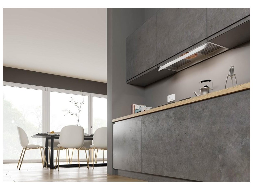 Sleduje současný trend čisté a kompaktní linie kuchyně, na rozdíl od ostatních vestavných digestoří je však vybavena unikátní technologií SOS.