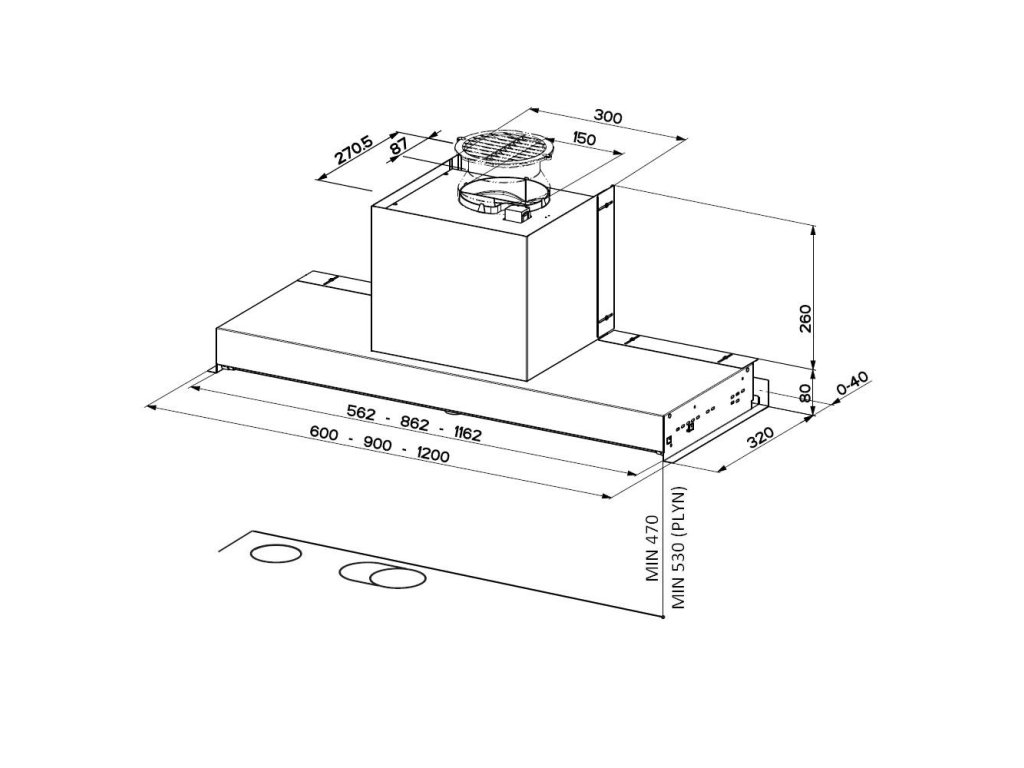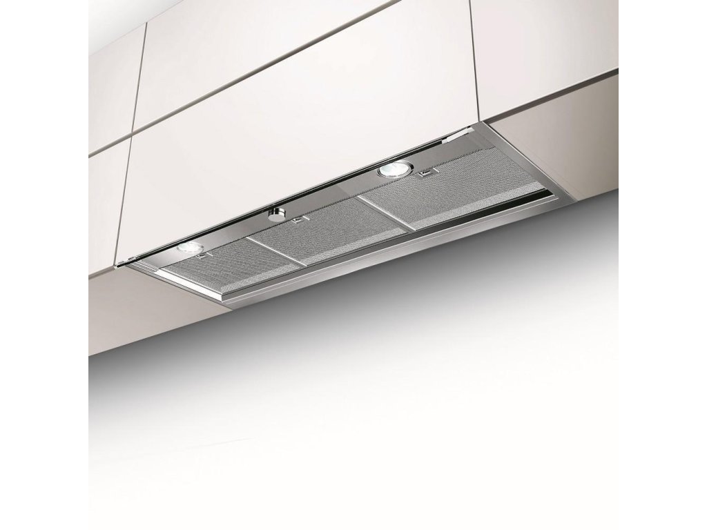 Vestavná digestoř je vybavena kovovými kazetovými tukovými filtry, které není třeba měnit a lze je jednoduše umýt v myčce nádobí. Dvířka skříňky jsou před parami chráněna skleněným výklopným čílkem.