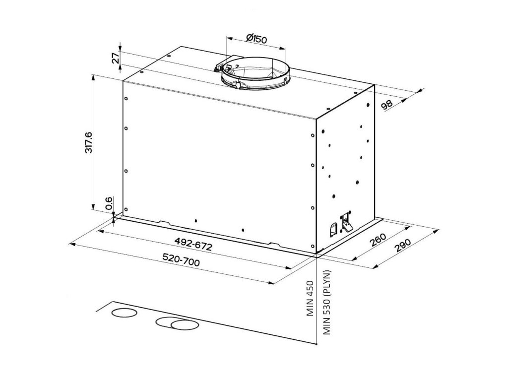 Lze ji také propojit s externím motorem na fasádu MISTRAL. V těchto případech jsou technické parametry digestoře shodné s parametry vybrané externí ventilační jednotky.