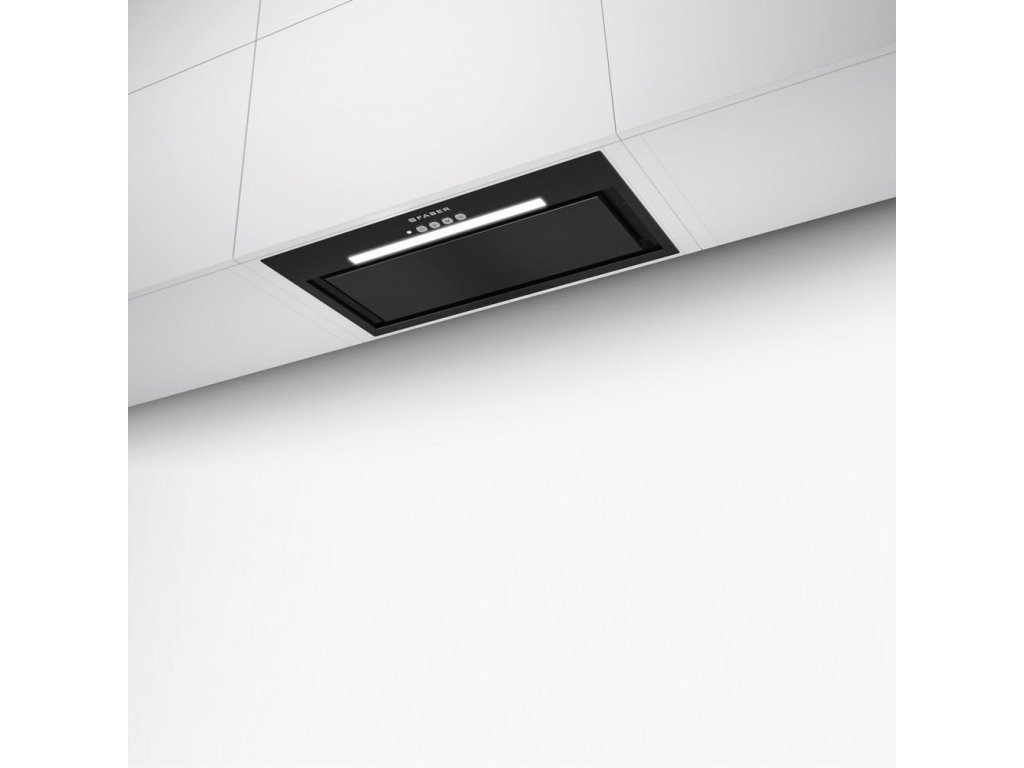 Minimalistický vzhled podtrhuje černý spodní panel odsavače, pod kterým jsou ukryty kovové tukové filtry omyvatelné v myčce. Neplní však jen estetickou funkci, pomůže vám udržet digestoř v čistotě a navíc tlumí hluk.