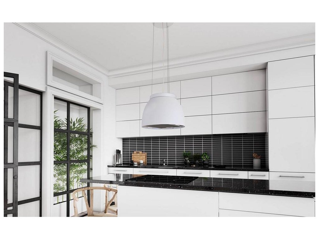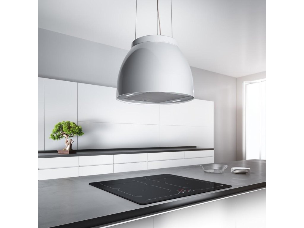 Ostrůvková digestoř v moderním, čistém designu.