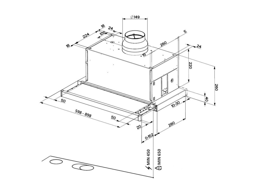 MAXIMA NG AM/X Vestavná výsuvná digestoř