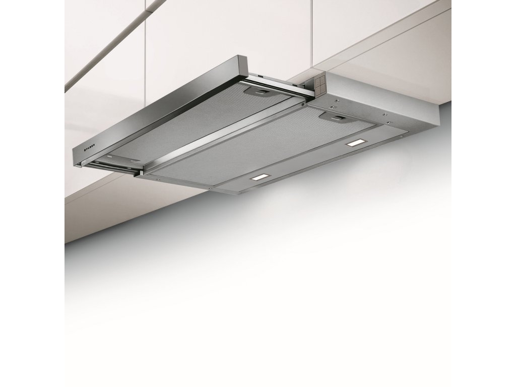 Odsavač disponuje aktivní výsuvnou částí, která po vysunutí sepne digestoř v přednastaveném režimu. Zasunutím lišty se funkce automaticky deaktivují.