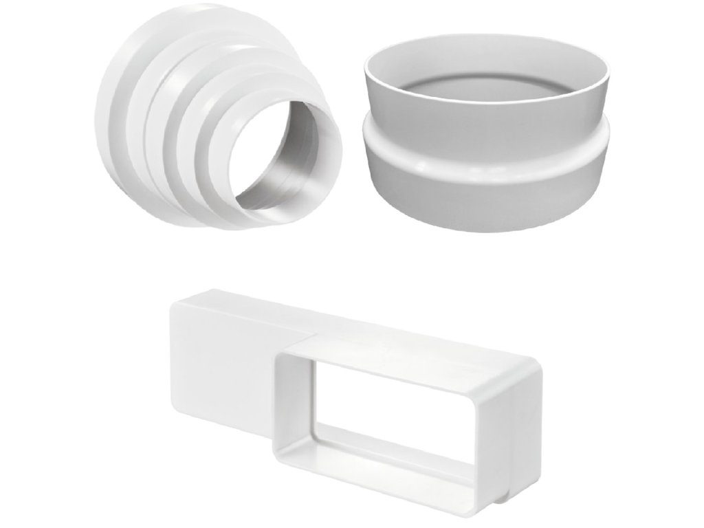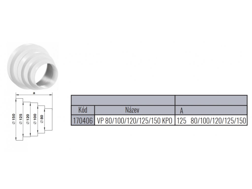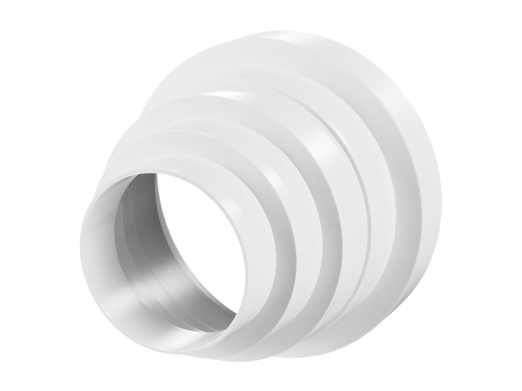 Mnohonásobný plastový přechod slouží pro napojení více průměrů potrubí – redukce z 80 / 100 / 120 / 125 / 150 mm.