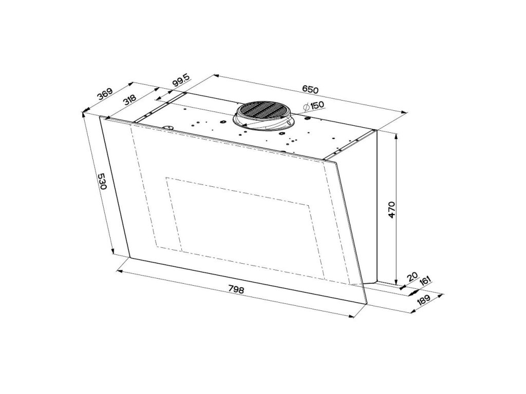 Nástěnná digestoř PURE BLACK se vyrábí pouze v provedení s černým sklem a v šířce 80 cm. Odsavač par lze namontovat tak, že odvádí výpary přímo otvorem v zadní části do vzduchového potrubí ve stěně (otočná motorová jednotka).