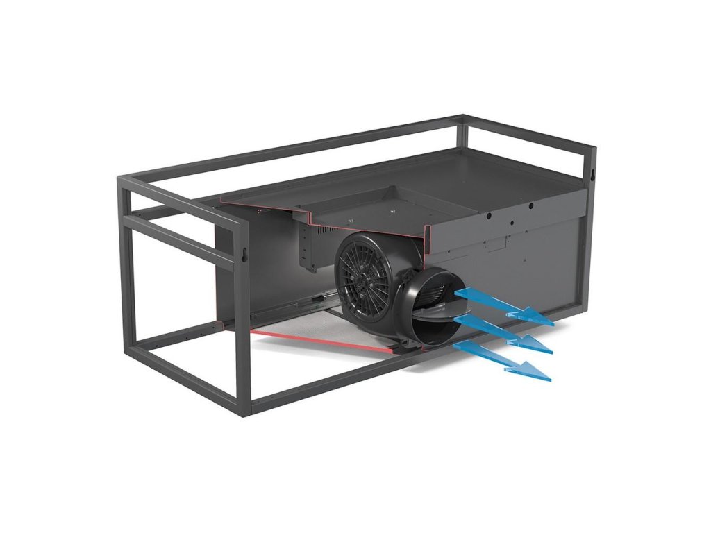 Odsavač je standardně dodáván v odtahové verzi pro odtah přímo dozadu (bez nutnosti použití komínu), teleskopický komín je možné v případě zájmu dokoupit. V případě instalace odsavače v odtahové verzi je vhodné k digestoři dokoupit zpětnou klapku, v případě recirkulačního provozu je nutné k digestoři dokoupit uhlíkový filtr.
