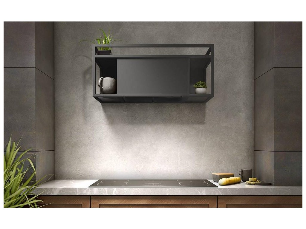 Nástěnná digestoř v originálním designu vybavená výkonným motorem s nízkou spotřebou elektrické energie.