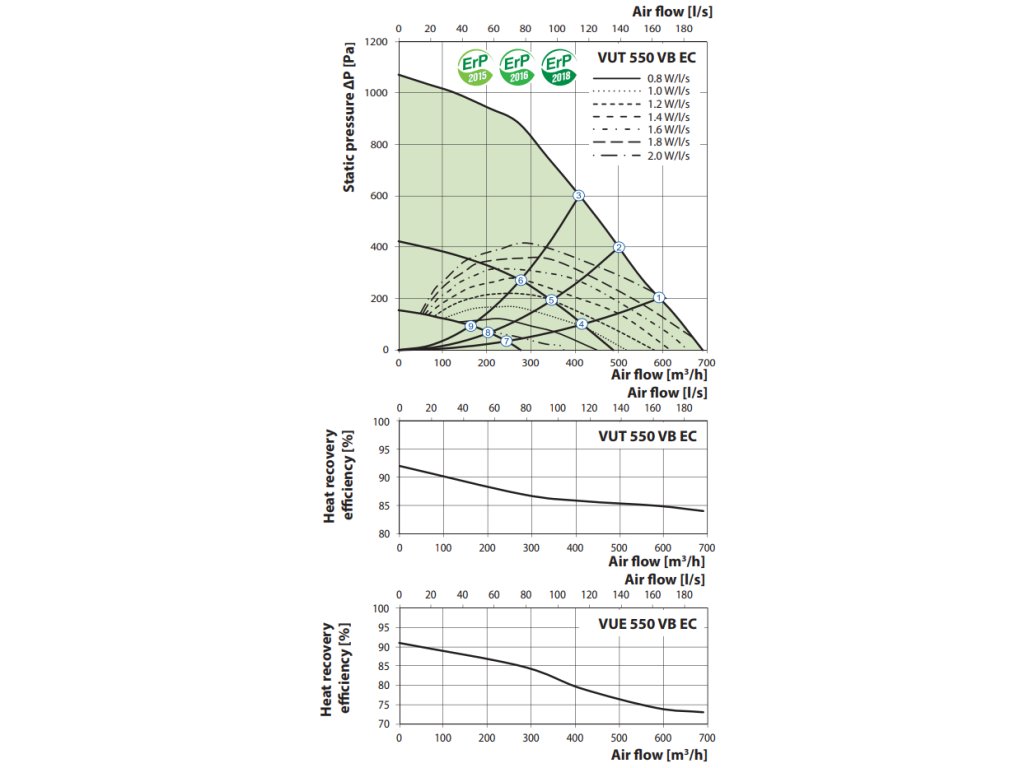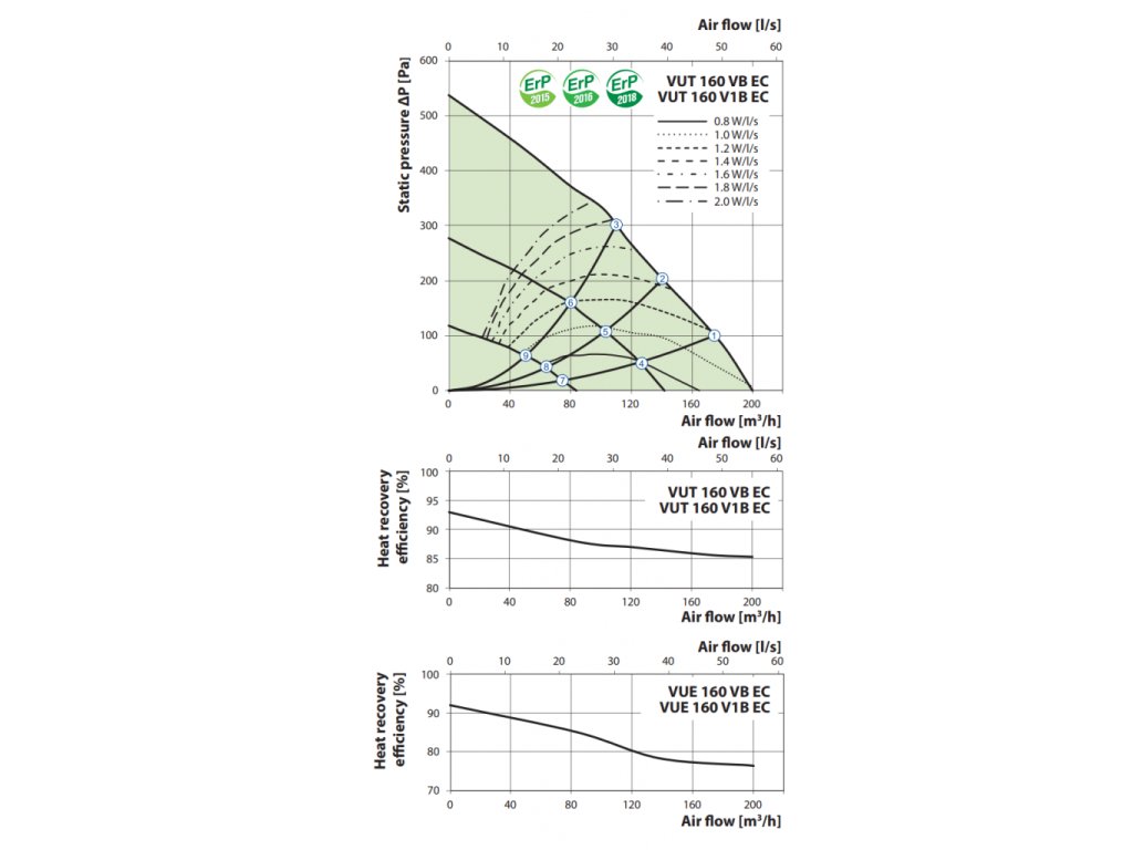 Rekuperační jednotky Vents VUT VB EC jsou vybaveny protiproudým výměníkem tepla z polystyrenu. V zimě se teplo z odváděného vzduchu přenáší na ohřev přiváděného vzduchu. Proces rekuperace snižuje tepelné ztráty větráním a umožňuje řízenou výměnu vzduchu. Jednotka je vybavena odkapávací miskou pro sběr a odvod kondenzátu.