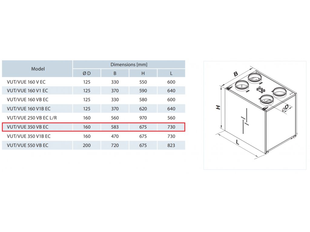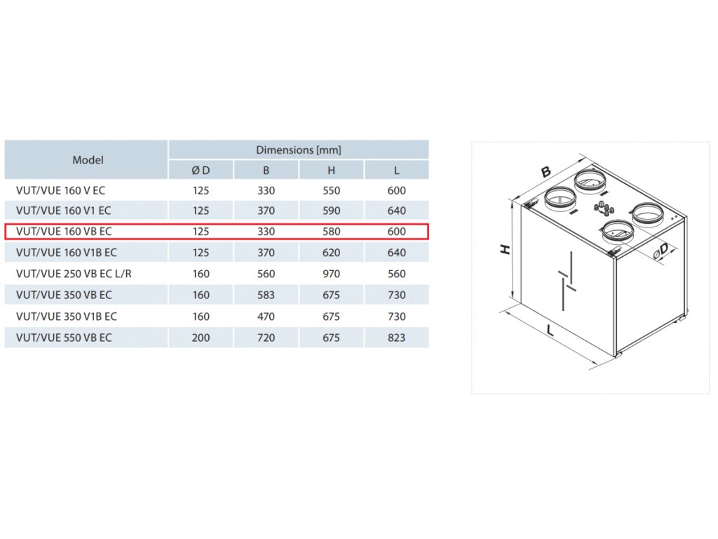 Rekuperační jednotka Vents VUT VB EC Nástěnná 160, 350, 550