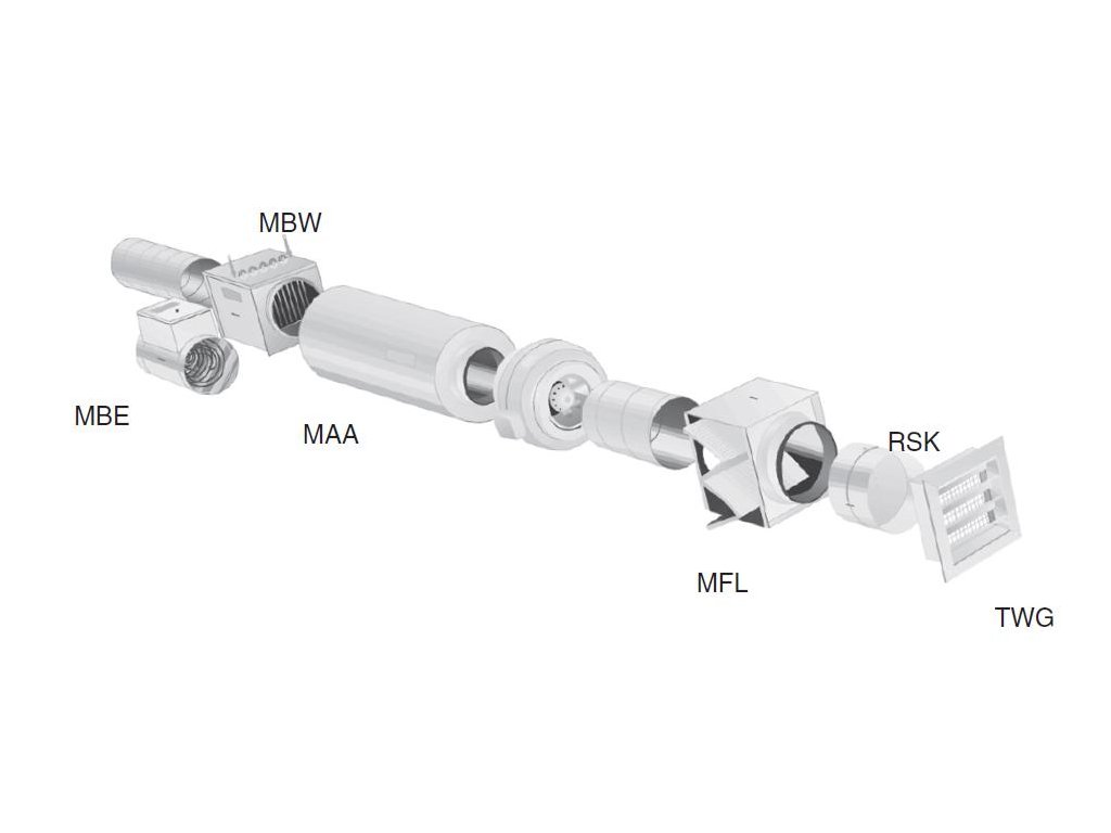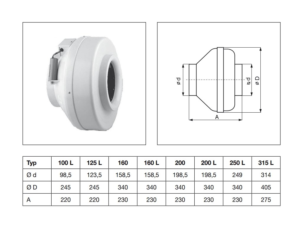 Montáž ventilátoru v každé poloze osy motoru. Skříň nesmí přenášet mechanické namáhání z potrubních rozvodů.