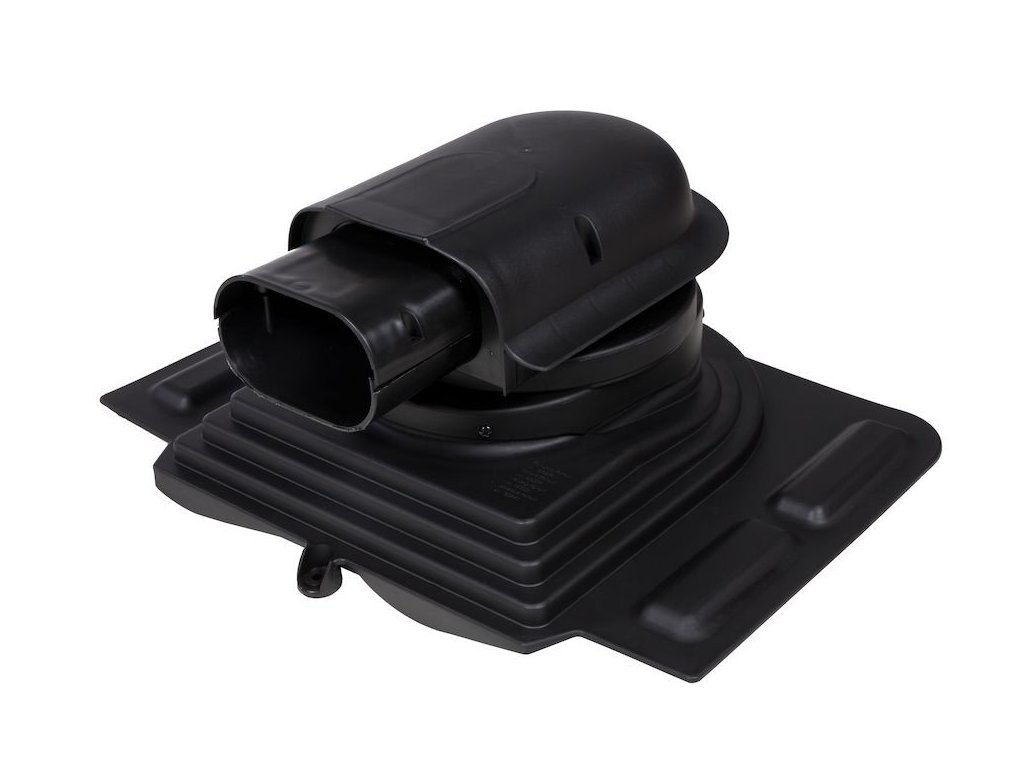 Gumová manžeta má hliníkovou základnu, kterou lze vytvarovat podle tvaru střešní krytiny. Rozměr 460 x 355 mm.