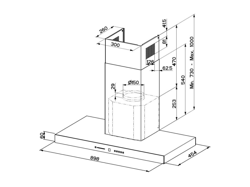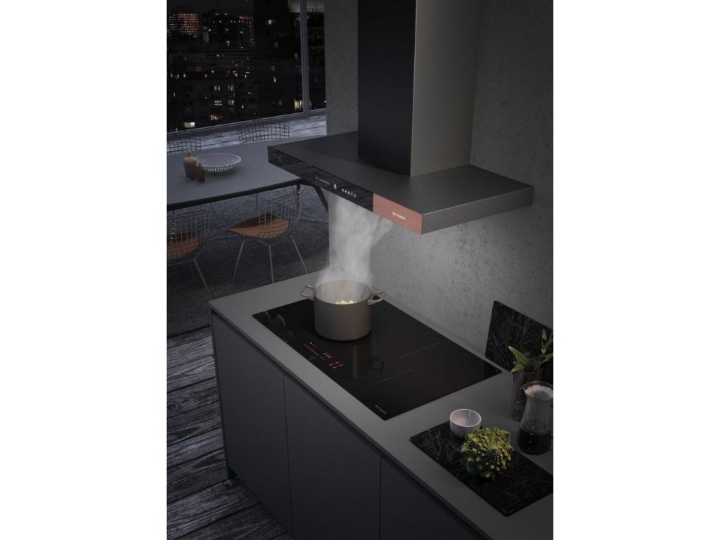 Čisté linie digestoře doplňuje výkonná a úsporná ventilační jednotka EVO v energetické třídě A+.