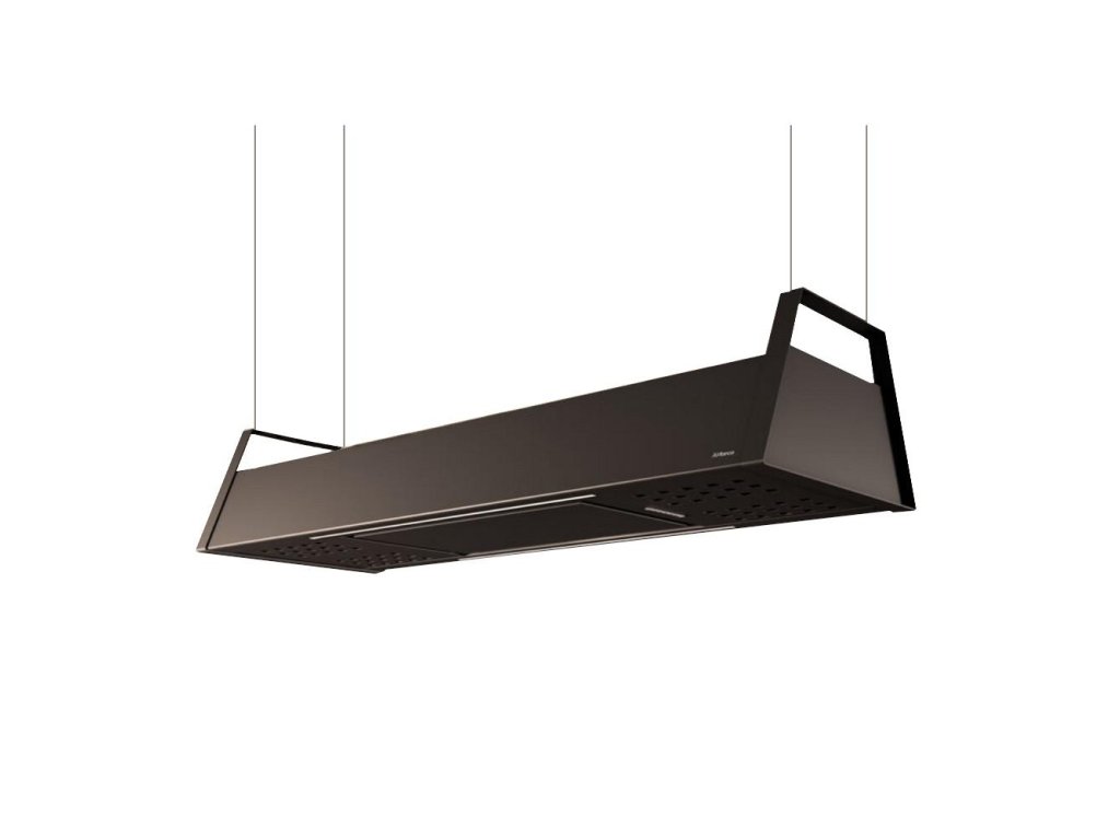 Dvoumotorová ostrůvková digestoř v neobvyklém designu.