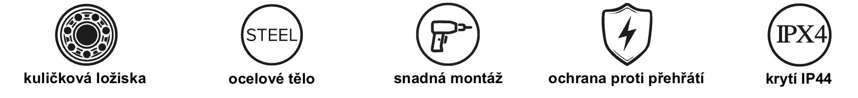 - Motor s tepelnou ochranou, který zajišťuje bezpečný chod i při dlouhodobém zatížení.