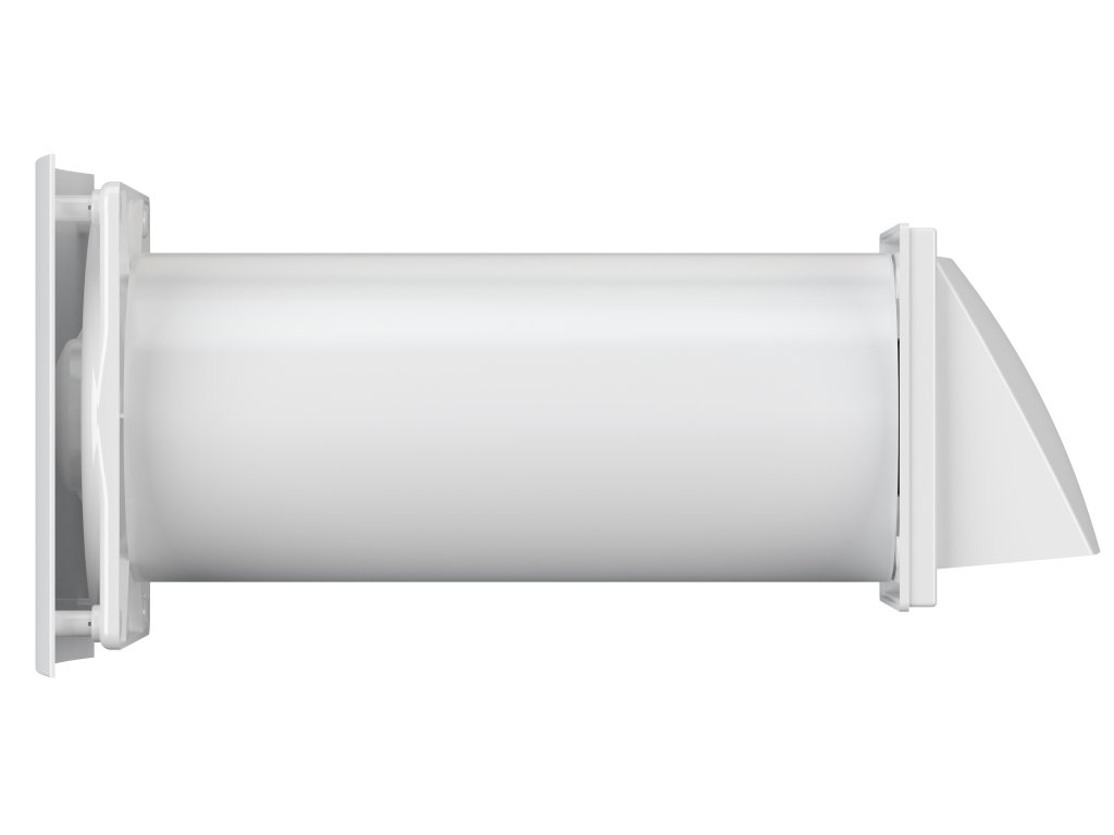 Pokud je zeď silnější než 580 mm, lze použít prodlužovací plastové potrubí až do celkové délky max. 1000 mm. Je však důležité počítat s tím, že při prodloužení nad 580 mm již nelze garantovat plný deklarovaný výkon lokální rekuperace.