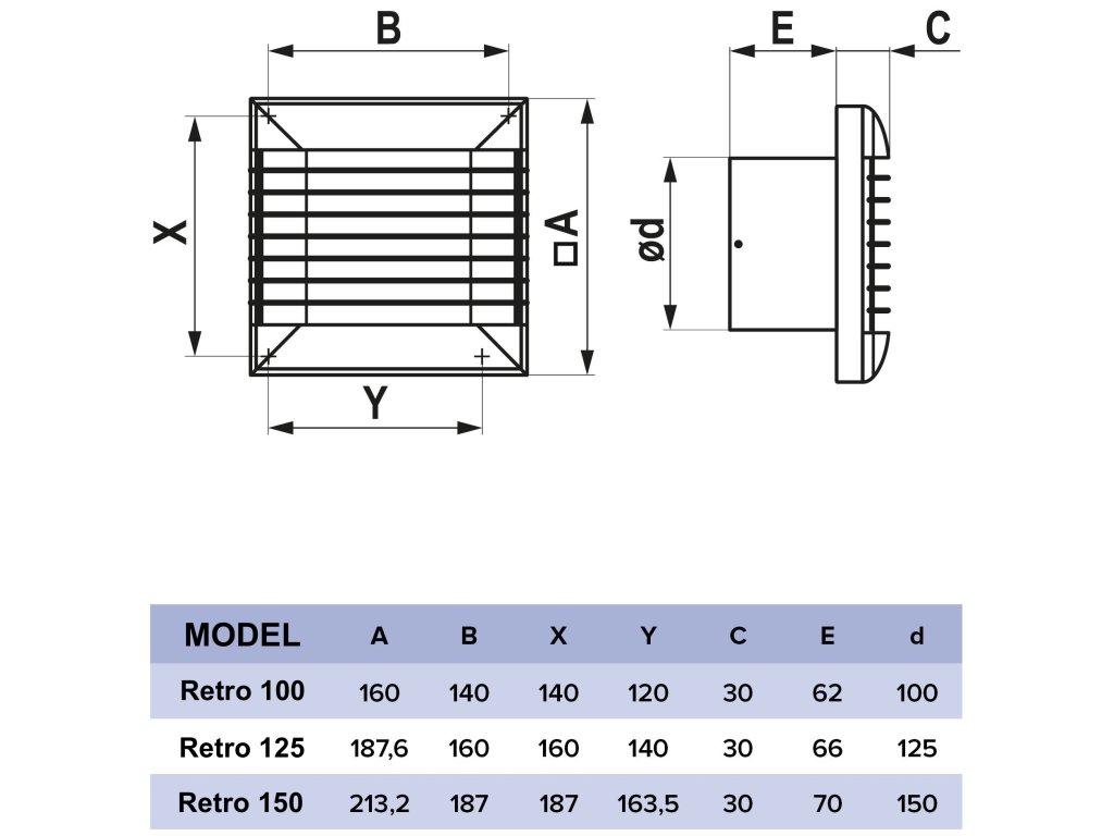 Ventila Retro 100 je nástěnný ventilátor do koupelny, určený pro efektivní odvětrání vlhkosti, pachů a vydýchaného vzduchu z koupelen, WC a dalších menších místností. Díky integrované automatické uzavírací žaluzii je ideální volbou všude tam, kde je kladen důraz na zabránění zpětnému proudění vzduchu, únikům tepla a pronikání studeného vzduchu z ventilační šachty.