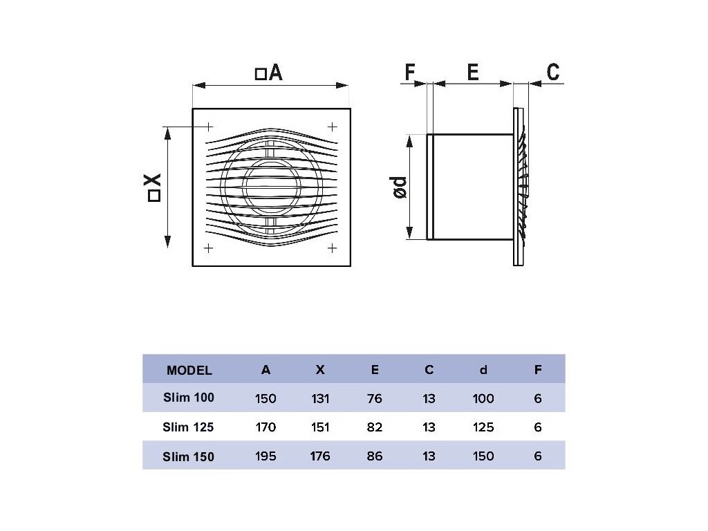 Koupelnový ventilátor Ventila Slim Silent B 150 T je určen pro montáž do zdi nebo stropu s napojením na ventilační potrubí odpovídajícího průměru. Instalace je rychlá a při dodržení montážních pokynů nevyžaduje složité stavební úpravy.