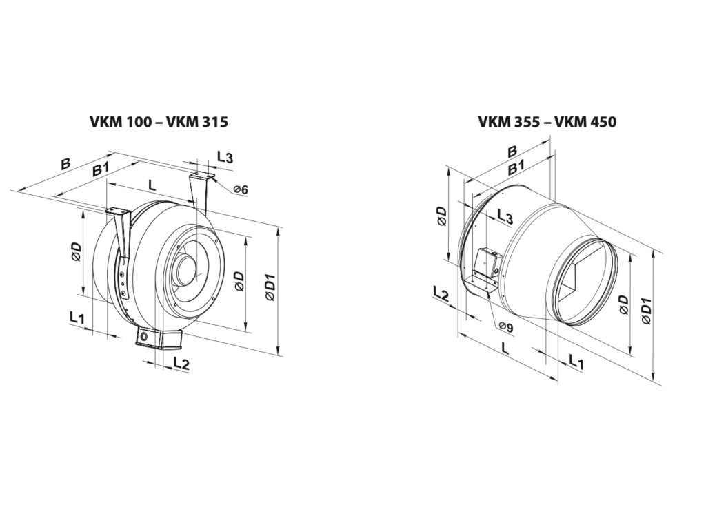 - základní model, vysoce výkonný- Ø160/200/315 mm a nízkohlučný- Ø 355 mm