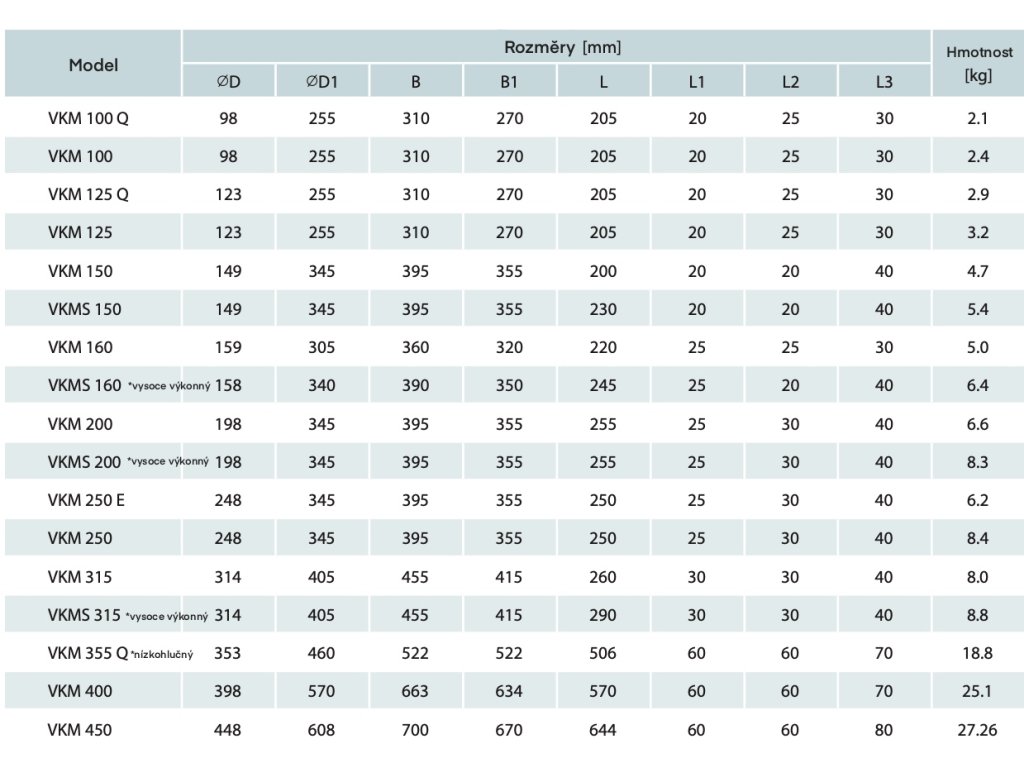 na úroveň hluku doporučujeme jednotky v nízkohlučné modifikaci (VKM...Q).