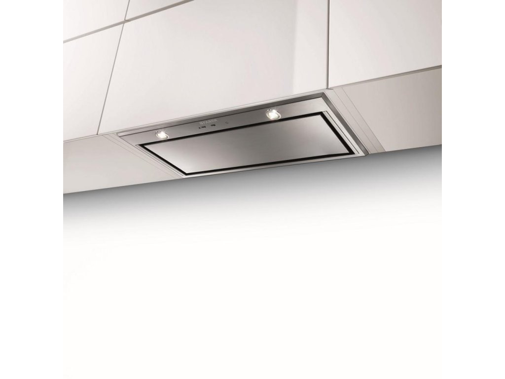 Ucelený vzhled umocňuje nerezový spodní panel odsavače, pod kterým jsou ukryty kovové tukové filtry omyvatelné v myčce. Neplní však jen estetickou funkci, pomůže vám udržet digestoř v čistotě a navíc tlumí hluk.