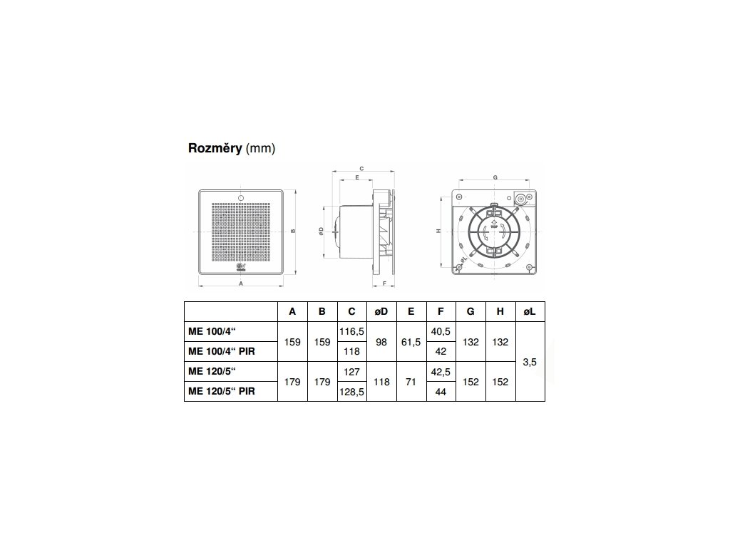 designových variantách.Mezi výhody patří krytí IP45, tedy ochrana proti tryskající vodě, která umožňuje ventilátor osadit v koupelně