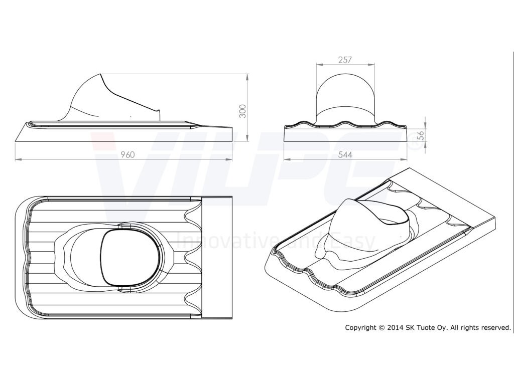 Montuje se tak, aby horní část průchodového prvku byla kryta hřebenem, strany a dolní část se vytvarují podle profilu krytiny.